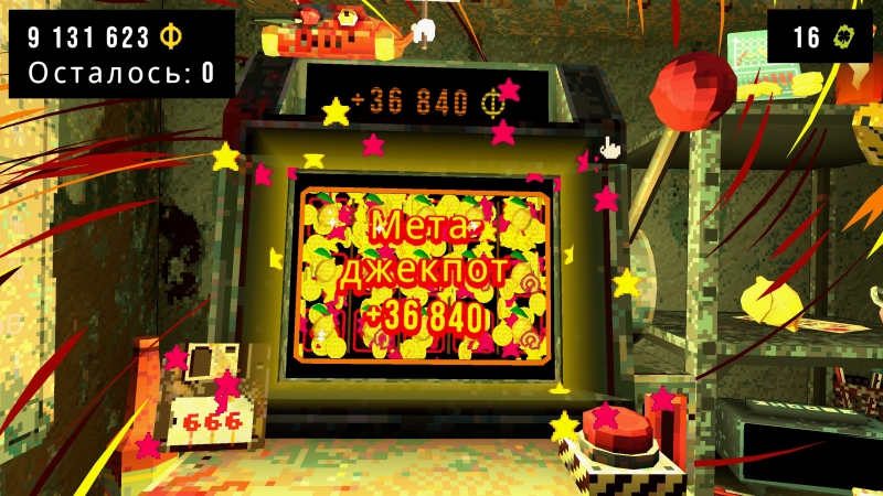 Словом, возможностей для махинаций с шансами навалом, но CloverPit преуспевает в том, чтобы не перегрузить вас информацией. Постепенно, шаг за шагом, игра посвящает в нюансы и особенности — и вот вы уже два часа кряду увлечённо дёргаете ручку слот-машины, тестируя разные сочетания талисманов, свойств и записей звонков. Первое время процесс действительно увлекает, но в какой-то момент однообразие ключевого игрового элемента начинает немного приедаться, да и фактор удачи, при всех вводных, никто не отменял. Порой очень обидно, когда объективно хорошая сборка разваливается из-за полуторапроцентного шанса на три шестёрки, которые, тем не менее, выпадали три раза за раунд и полностью сломали прохождение. Да и просто многократно попадающиеся слабые комбинации могут решительно испортить настрой и сбить кураж. Но у CloverPit ещё есть пара козырей. Например… выдвижные ящики!